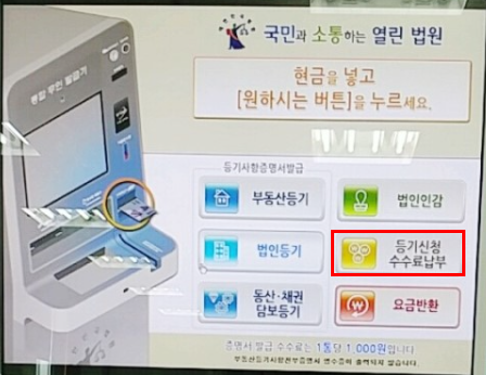 그전에 한 가지 알고 가셔야 되는 게 있는데 등기 신청 수수료 영수 확인서가 필요한데요.