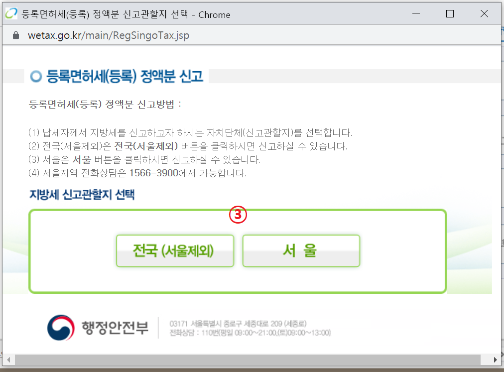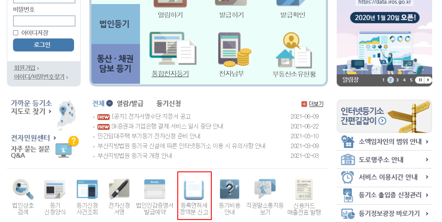 홈페이지 하단 밑에 등록면허세 정액분 신고를 클릭합니다.