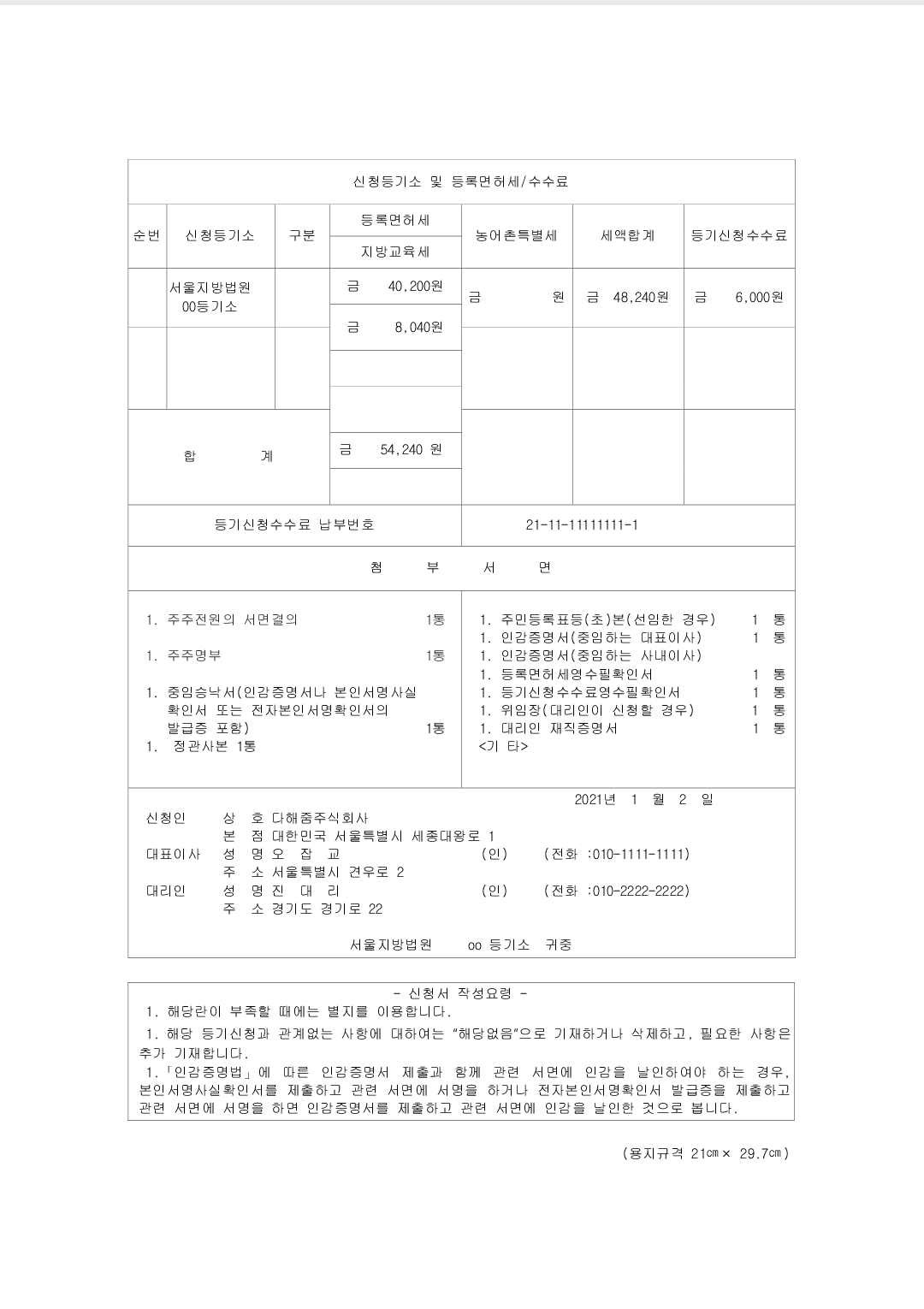 마지막으로 해당 등기소의 접수담당자나 등기관에 따라 서류가 약간씩은 틀릴 수 있으니 감안하시기 바랍니다.