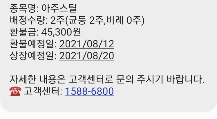 저도 균등배정 청약으로 이번에 운 좋게 2주를 배정 받았습니다.(늘 소수점 이하는 탈락이었는데......)