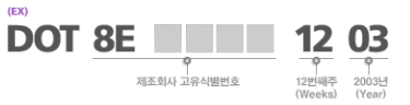 대부분 타이어 측면에 타원형 동그라미 안에 숫자 4자리가 표기되어있습니다.