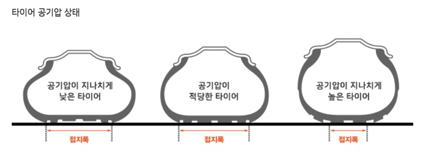 공기압에 대하여 찾다 보니 타이어 공기압이 부족해도 문제지만 과다해도 문제더라고요.