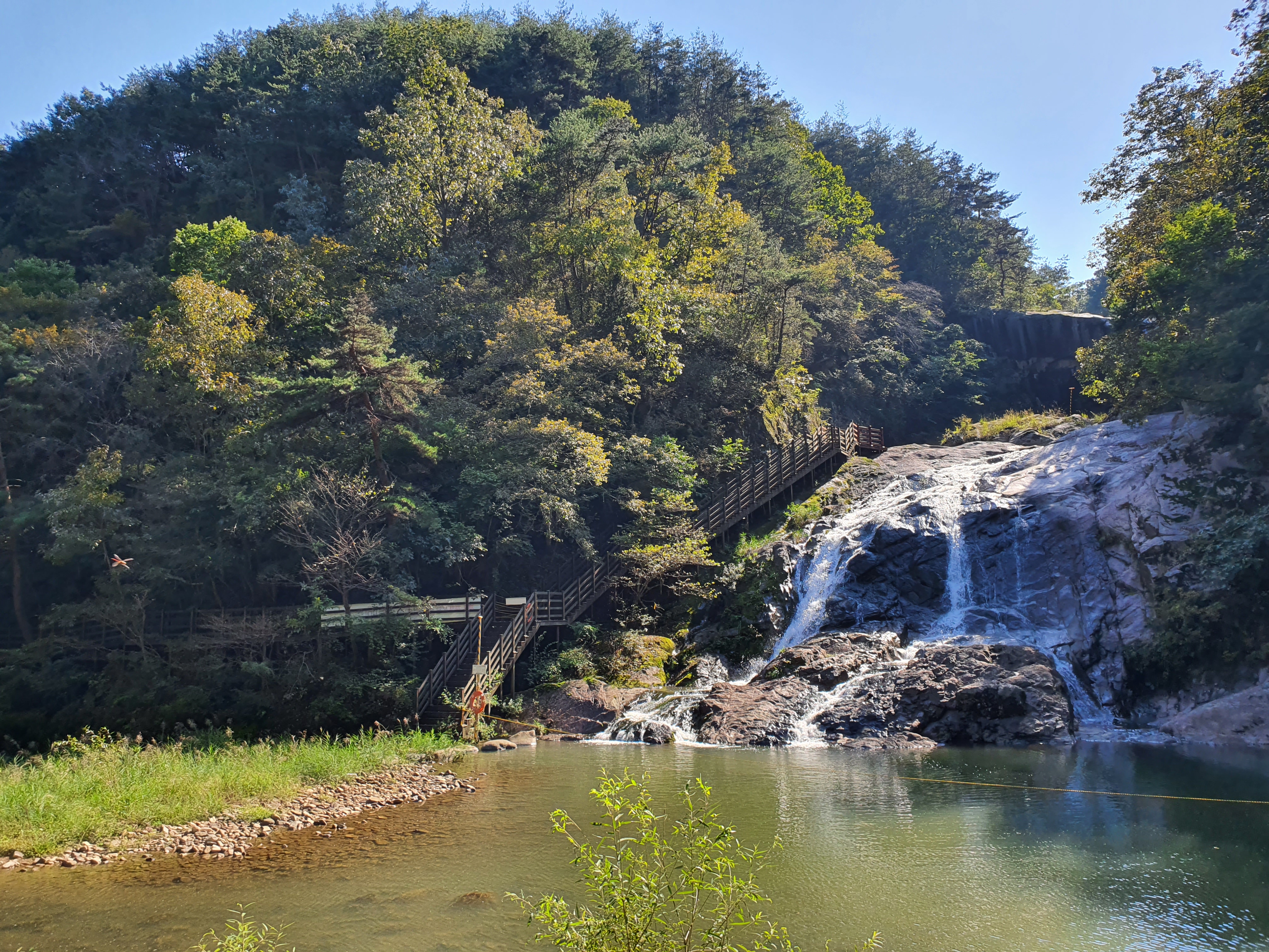 폭포 상단이 절경(?)인데 상단 쪽 가는 길은 따로 데크로 정리하거나 길을 만들어놓지 않았고 계단이 끝나면 바위를 잘 건너뛰어야 폭포 정면 쪽으로 갈 수 있습니다.
