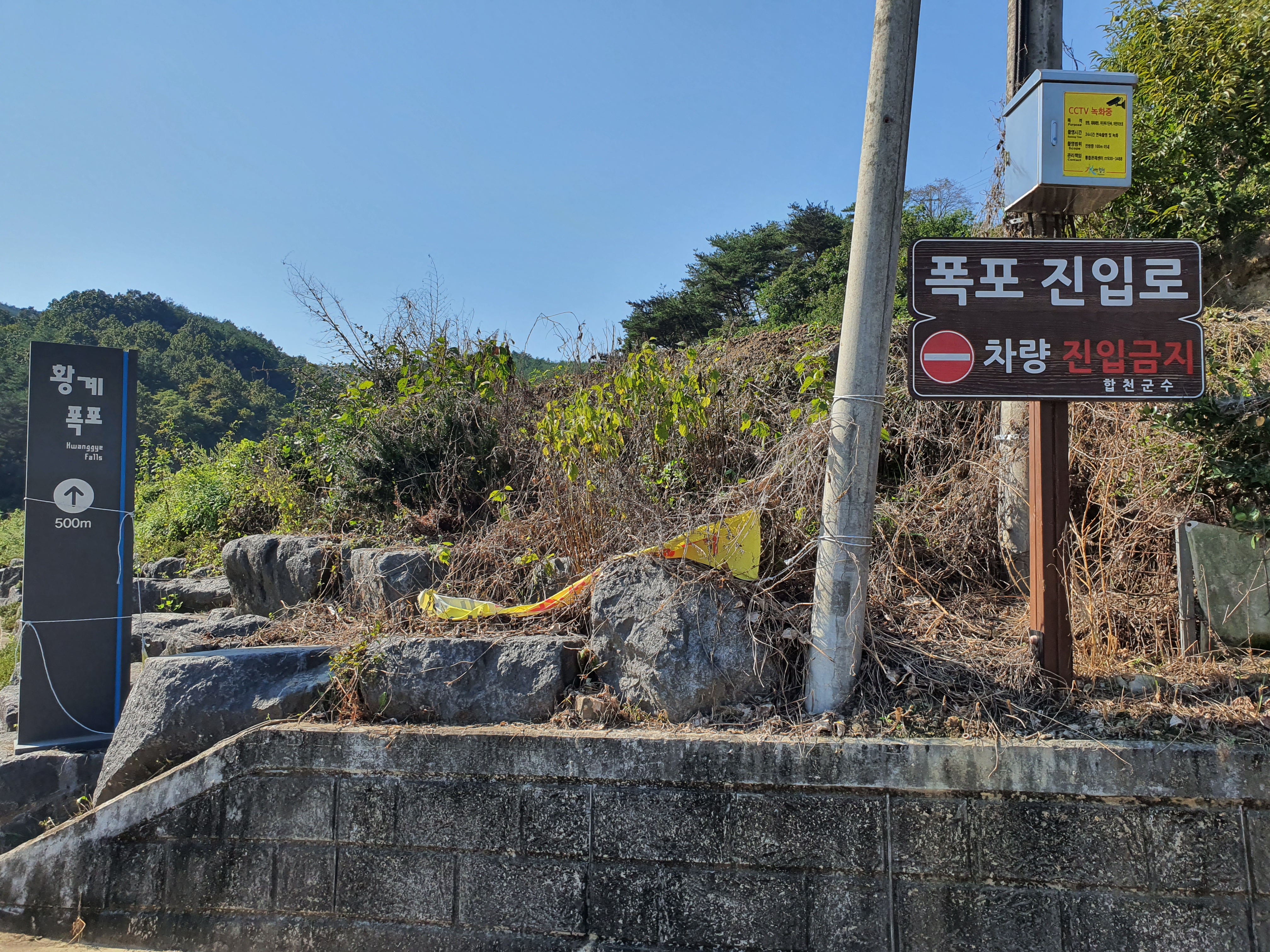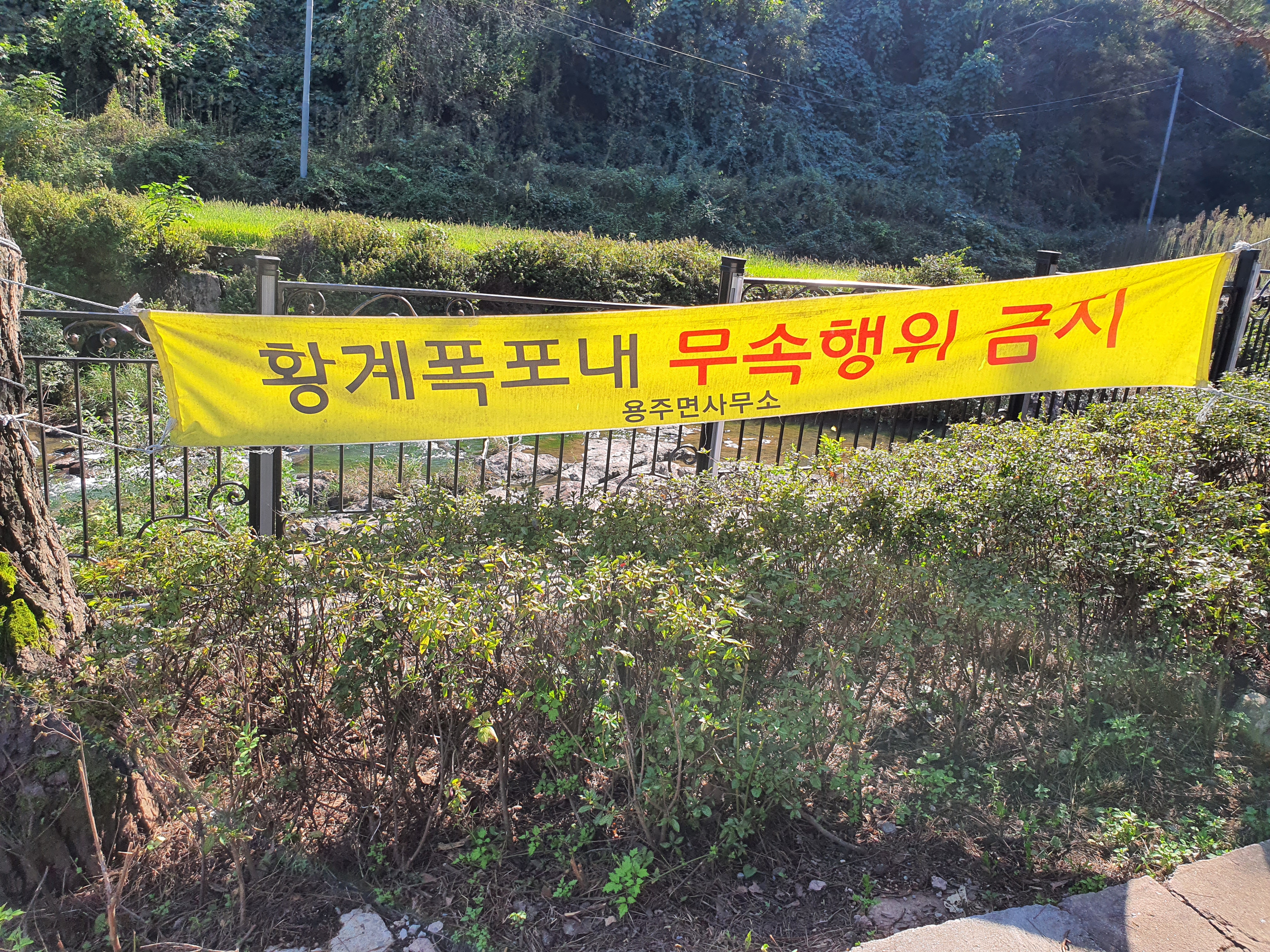 주차를 하고 황계폭포로 향하는 길목에 특이한 현수막이 있어 찍어 봤습니다.