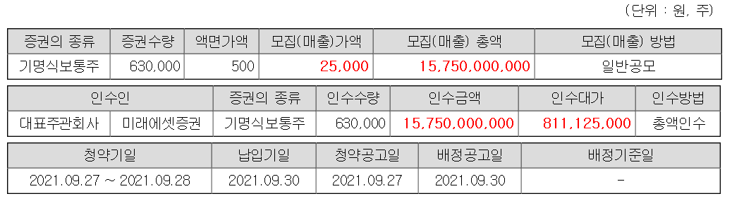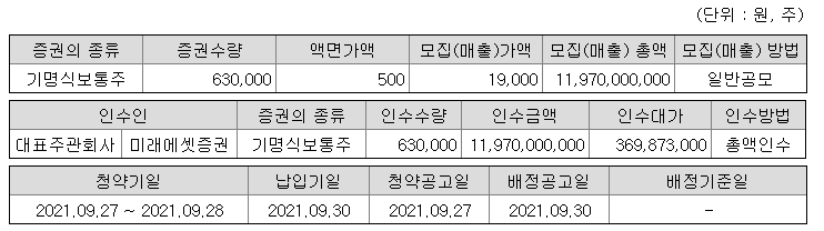- 공모청약일 : 2021년 09월 27일 ~ 09월 28일