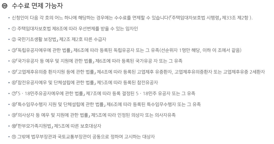 재판하는 비용보다 저렴하지만 주택임대차 보호법 제21조 제1항에 따라 조정신청 시 약간의 수수료를 내야 합니다.