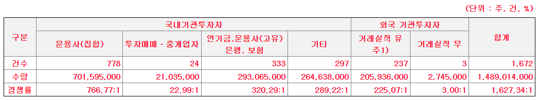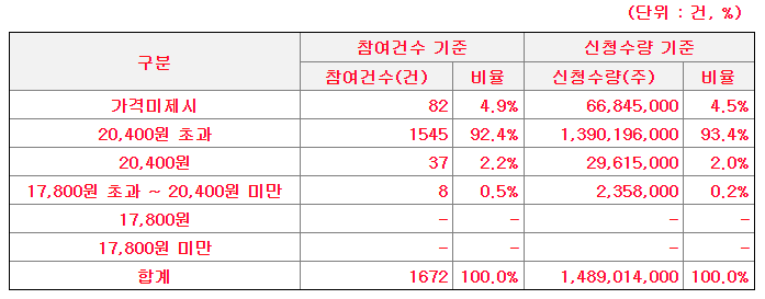 이번 수요예측에서 기관의 의무보유확약비율은 9.2%(총수량 대비)이며 그리 높은 편은 아닌 듯합니다.