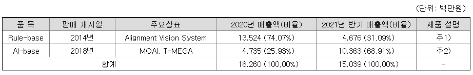 트윔의 2020년 매출은 18,260백만 원으로 트윔 제품별로 보면 Rule 기반이 13,524백만원, AI기반이 4,735백만원으로 2020년까지는 매출의 상당 부분을 Rule 기반이 차지했으나 2021년 들어서는 상반기 기준 15,039백만원 중 AI기반의 제품이 약 70%의 매출을 올리고 있습니다.