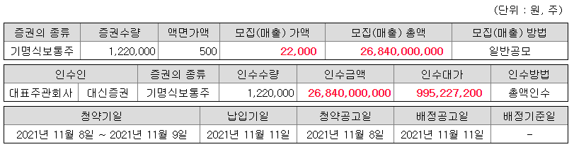- 공모청약일 : 2021년 11월 08일 ~ 2021년 11월 09일